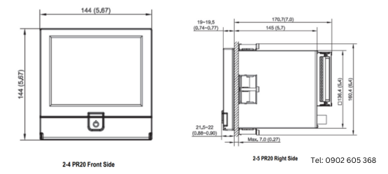 Lớp bảo vệ của bộ ghi PR20: Mặt trước theo chuẩn IP65; Phía sau theo chuẩn IP20