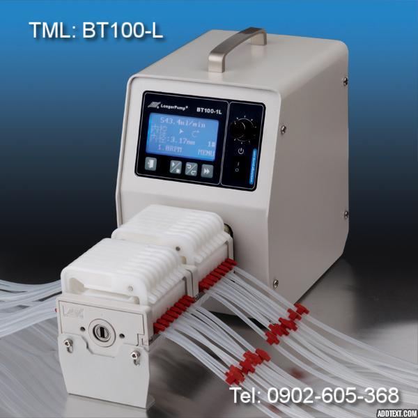 Bơm nhu động BT100-1L có tên tiếng anh Flow Rate Peristaltic Pump theo chuẩn IP31 - Tốc độ dòng chảy nhỏ nhất có thể đạt 0.002ml/min Cao nhất--500ml/min, ứng dụng với đầu bơm và dây ống silicon đi kèm cho mức lưu lượng chiết rót khác nhau cụ thể như